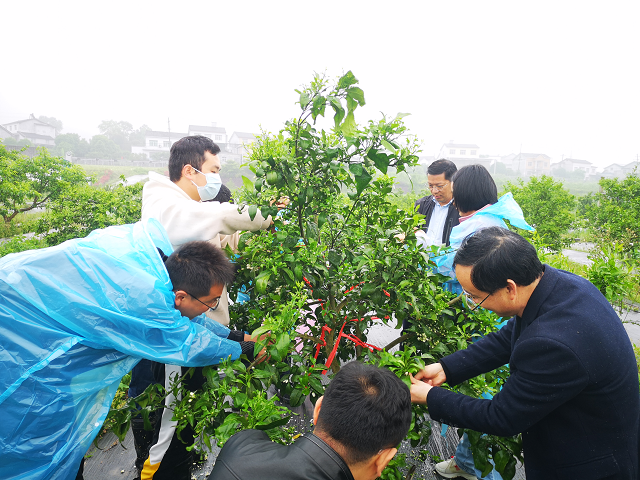 4月23日,华中农业大学教授、柑橘遗传育种专家郭文武教授带领课题组成员到宜昌市农科院柑橘试验基地考察交流并合作开展杂交试验,我院副院长廖文月、果树团队科技人员陪同。