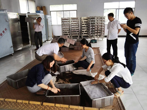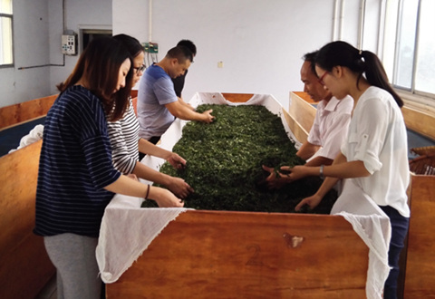9月5日,我院茶叶研究所负责人黄声东带领茶叶团队深入车间,同五峰县茶叶局、五峰武陵山茶业股份有限公司联合开展宜昌红茶联盟标准的验证试验,针对宜昌红茶品质提升开展科技攻关。
